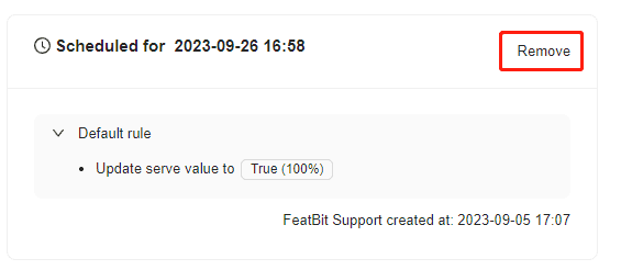 Follow the steps in Viewing scheduled flag changes to open the list of pending scheduled changes for the flag.