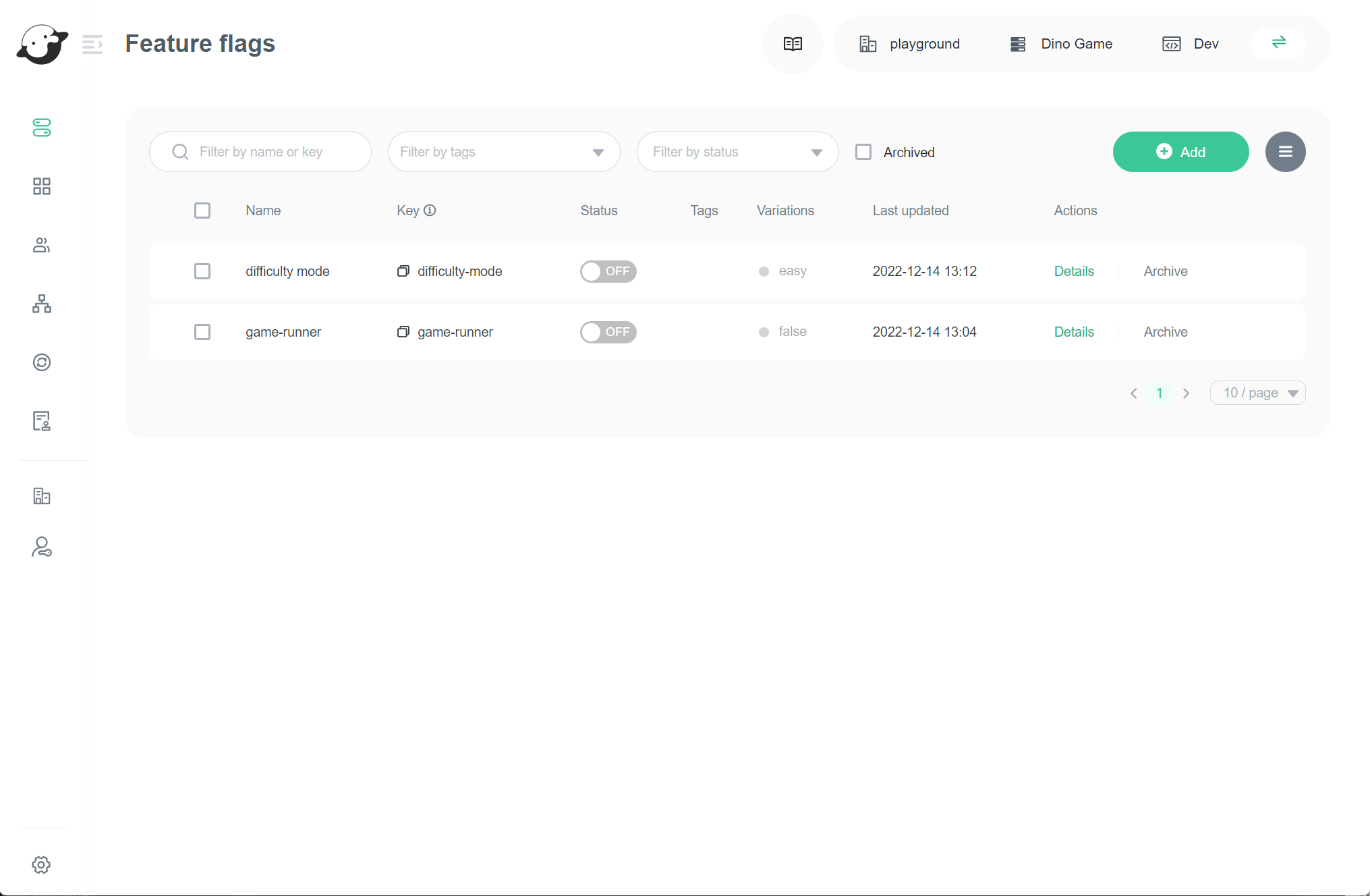 By default, the most recently updated flags appear first, and archived flags will not be shown in the list. To view the archived flag list, you need to check the 'Archived' checkbox.