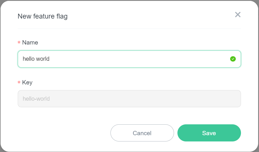 NOTE: A suggested key auto-populates when you enter the name, you'll use this key to reference the flag in your code. After you save the flag key, you cannot modify it. You can change a flag's name, however, whenever you want.