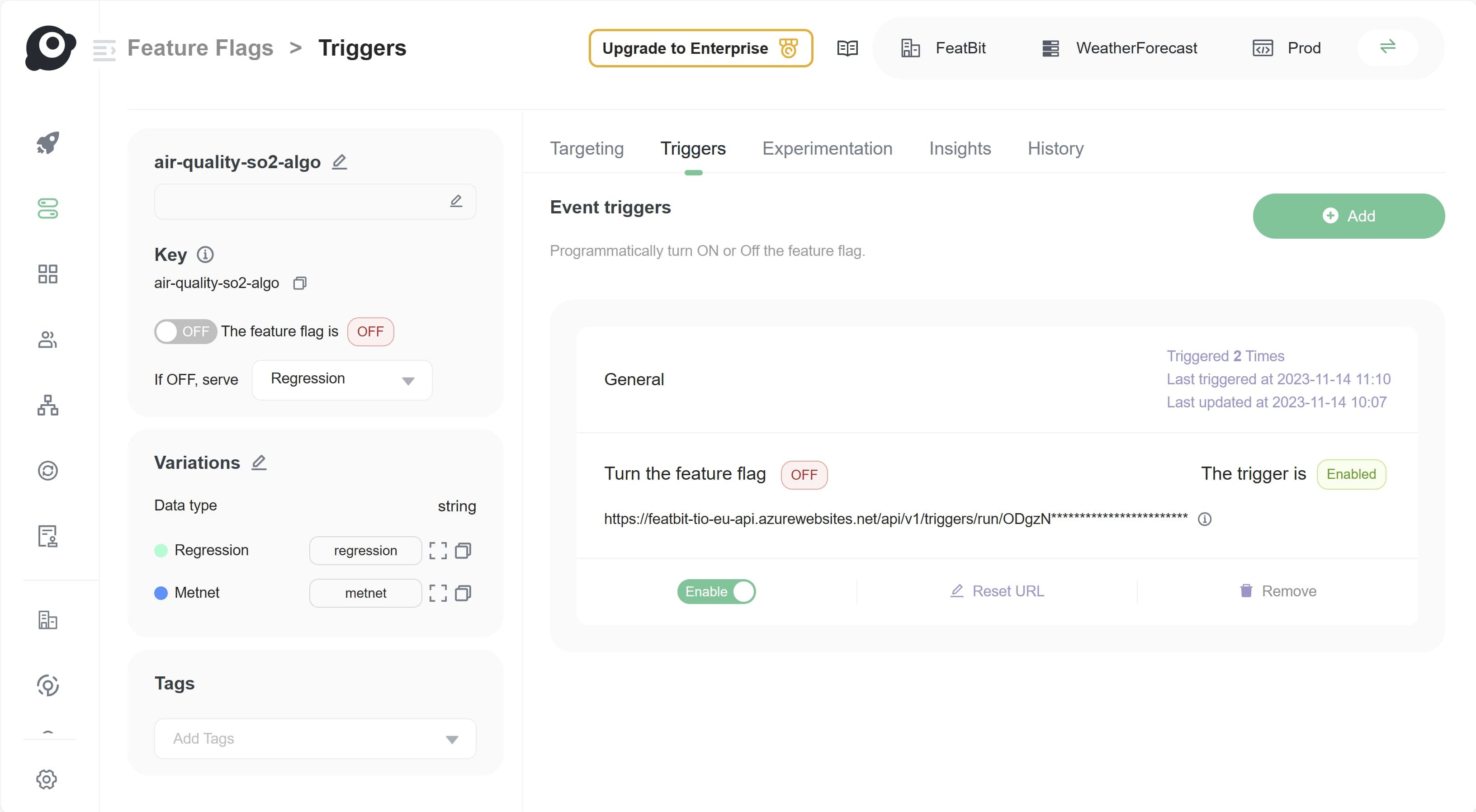 Set the webhook URL to call FeatBit's trigger