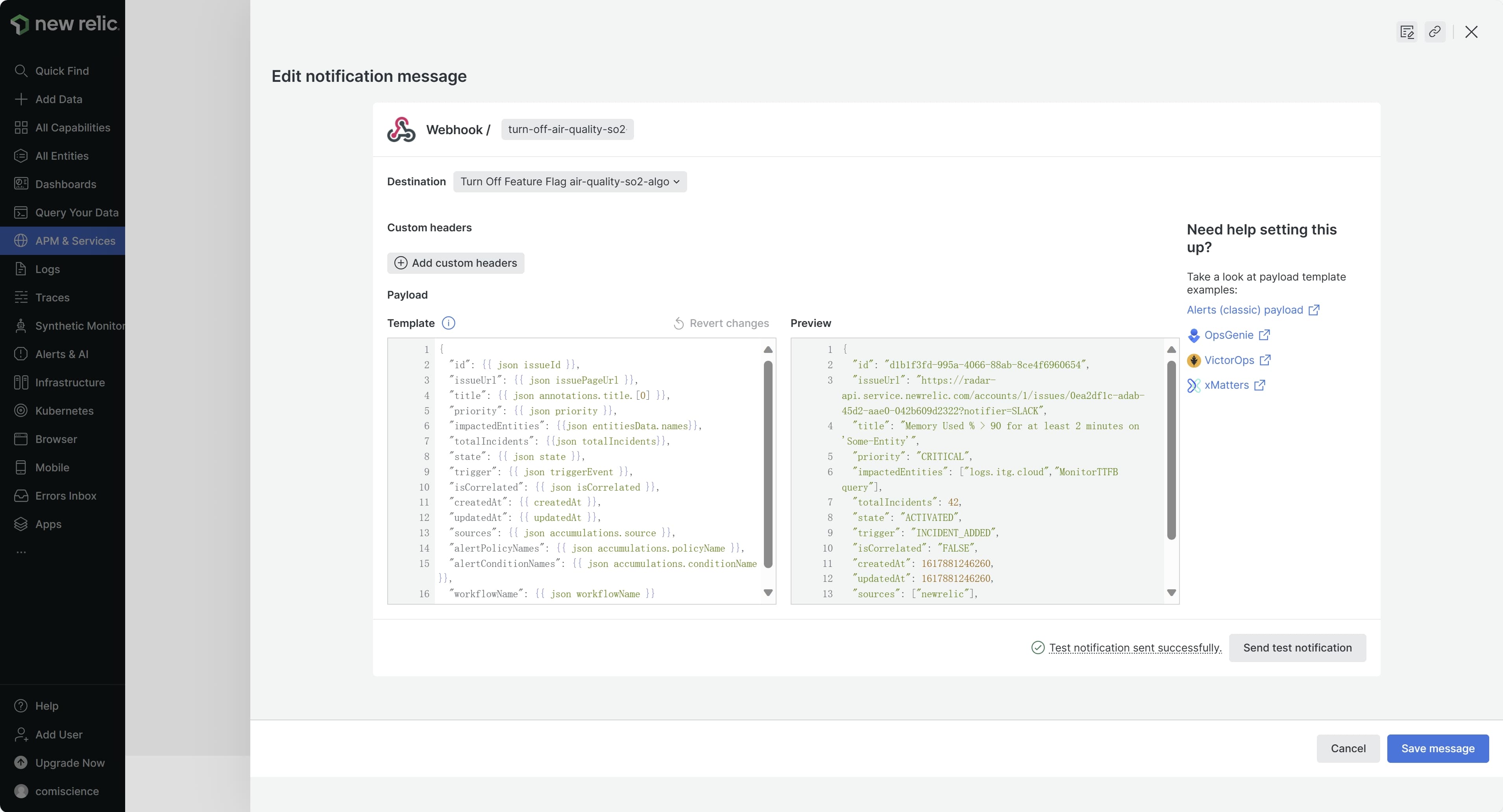 8. In the Payload Template enter the following template (you can also customize your own payload template):